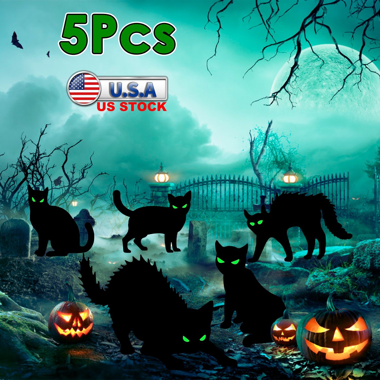 Home > Halloween Cat Yard Sign Decorations 5Pcs Glow in the Dark Halloween Cat Fluorescence Lawn Sign with 10 Stakes for Haunted House Garden Yard and Scary